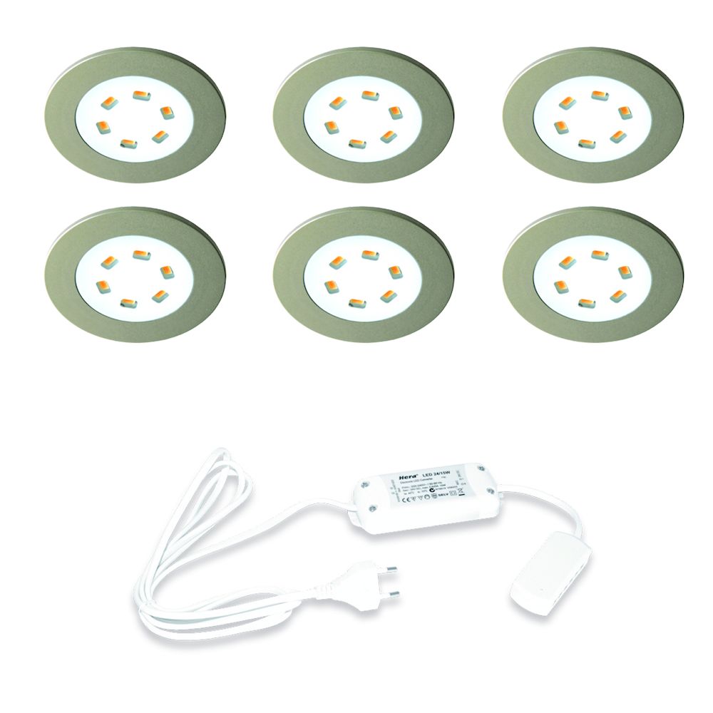 Hera LED 24V / 15W Inbouw set R-55 6 Spots kleur Rvs-Look/Wit