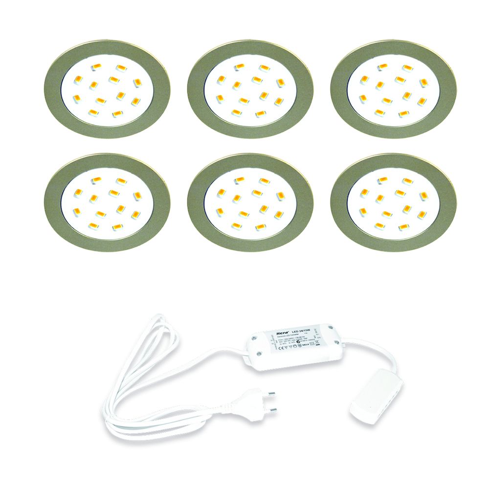 Hera LED 24V / 15W Inbouw set R-684 6 Spots kleur Rvs-Look/Wit